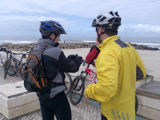 Após mais uns km´s em que me comecei aressentir do esforço já iamos quase a Esmoriz novamente um problema com pneus pelo nosso líder pois furou.
